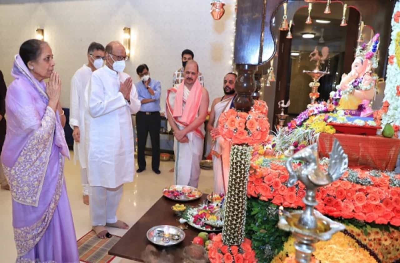 (Sharad Pawar takes blessings of Ganapati Bappa at CM Residence Varsha Bungalow)