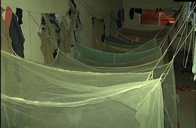 कुर्ला ब्रिजखाली झोपडीवजा असणाऱ्या या खोलीत गाड्यांचा कलकलाट, डासांपासून वाचण्यासाठी अनेक पोलिस शांत झोपल्याचे चित्र ‘टीव्ही 9 मराठी’ च्या कॅमेऱ्यात कैद झालं आहे. विशेष म्हणजे पोलिस झोपलेले असलेल्या खोली शेजारीच सार्वजनिक शौचालय आहे. त्यामुळे या खोलीत प्रचंड दुर्गंधी पसरली आहे. मात्र तरीही दिवसभराचा ताण, थकवा, क्षीण यामुळे पोलिस दलही शांत झोपी गेलं आहे.