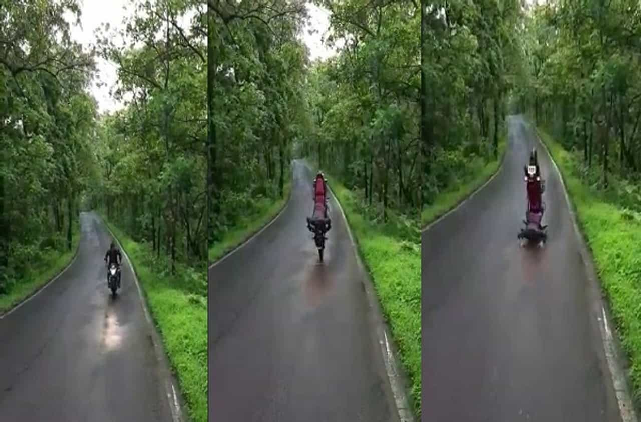 गेल्या काही दिवसांपासून स्टंटबाजी करतानाचे Tik Tok व्हिडीओ चांगलेच व्हायरल होत आहे. नुकतंच मुरबाडमधील डॅम रस्त्यावर एका तरुणाचा मोटार सायकलवर स्टंटबाजी करताना व्हिडीओ व्हायरल होत आहे. या व्हिडीओमध्ये हा तरुण रस्त्यावर बाईक चालवत आहे. बाईक एका चाकावर चालवण्याचा प्रयत्नात असताना त्या तरुणाची गाडी पलटी झाली. बाईक चालवताना त्याने हेल्मेटही वापरले नव्हते. त्यामुळे त्याच्या डोक्याला गंभीर दुखापत झाली.