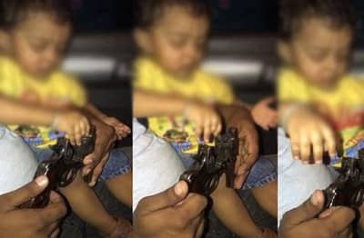 आदर्श उपाध्याय यांनी रिव्हॉल्वहरमध्ये 3 जिवंत काडतुसे टाकून चिमुकल्या मुलाच्या हातात दिली. इतकंच नाही तर हा धक्कादायक व्हिडिओ या पालकाने व्हाट्स अप स्टेटसला ठेवला. त्यानंतर व्हायरल झालेला हा व्हिडीओ टीव्ही 9 मराठीच्या हाती लागला.