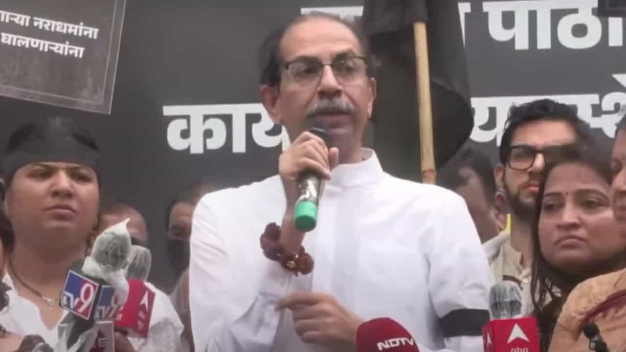 “हा महाराष्ट्र साधूसंताचा आहे. फुले शाहू शिवाजी महाराज आणि आंबेडकरांचा महाराष्ट्र आहे. ही नावे तोंडी लावायला घेत नाही. हा संस्कारीत महाराष्ट्र आहे. एका बाजूला विकृत आणि नराधम आहे. त्यावर पांघरून घालणारं विकृत सरकार आहे. त्यांच्याविरोधातील हा लढा आहे. आजपासून गावात मुख्य चौकात स्वाक्षरी घ्या. जेवढ्या स्वाक्षऱ्या गोळया करून सर्वोच्च न्यायालयाला पाठवत आहोत. बंद का करत आहोत. हे दाखवायचं आहे”, असेही उद्धव ठाकरे म्हणाले.
