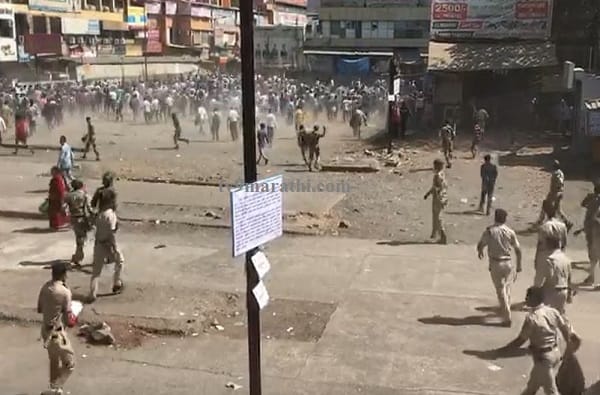 रेल्वेच पुढे जाऊ न दिल्याने स्टेशनवरील गर्दी तुफान वाढली. त्यातच घोषणाबाजी सुरु झाली. यावेळी पोलिसांनी आंदोलकांना ट्रॅकवरुन हटवण्याचा प्रयत्न केला, मात्र जमावाच्या घोषणा चालूच राहिल्या. दुपारी एकच्या सुमारास जवळपास दहा हजरांवर जमावाची संख्या पोहोचली. जमाव हळूहळू हाताबाहेर जाऊ लागला. तसंच ट्रेनचा खोळंबा झाल्याने प्रवाशीही अडकून पडले. कुणाला नोकरीला, कुणाला खासगी कार्यक्रमांना, कुणाला लग्नाला, कुणाला रुग्णालयात जायचं होतं. मात्र रेल्वे रोखल्यामुळे सर्वकाही ठप्प होतं. दरम्यान जमाव हाताबाहेर जात असल्याचं पाहून पोलिसांनी आक्रमक पवित्रा घेत, आंदोलकांवर लाठीचार्ज केला.