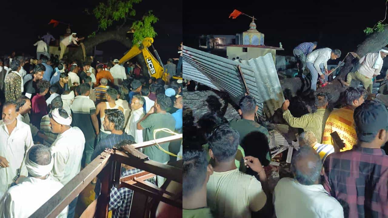 बाबूजी महाराज मंदिरात काल रात्री आरतीचं आयोजन करण्यात आलं होतं. दररोज होणाऱ्या या आरतीला ग्रामस्थ मोठ्या प्रमाणावर उपस्थित होते. आरती सुरू असतानाच वादळी वाऱ्यासह पावसाला सुरुवात झाली. त्यामुळे मंदिराबाहेर आरतीसाठी उभे असलेले भाविक मंदिरात आले. सर्वजण मंदिरात दाटीवाटीने उभे राहून आरती करत होते. बाहेर पाऊस सुरू होता. इतक्यात मंदिरालाच लागून असलेलं 100 वर्ष जुनं लिंबाचं झाड मंदिराच्या टिन शेडवर कोसळलं. अचानक झाड कोसळल्याने संपूर्ण शेड खाली आली आणि त्यात अनेकजण दबले गेले. त्यामुळे लोकांमध्ये एकच घबराट पसरली. तात्काळ झाड हटवून लोकांना बाहेर काढण्यास सुरुवात करण्यात आली. या टिनच्या शेडखालून 7 जणांचे मृतदेह बाहेर काढण्यात आले.