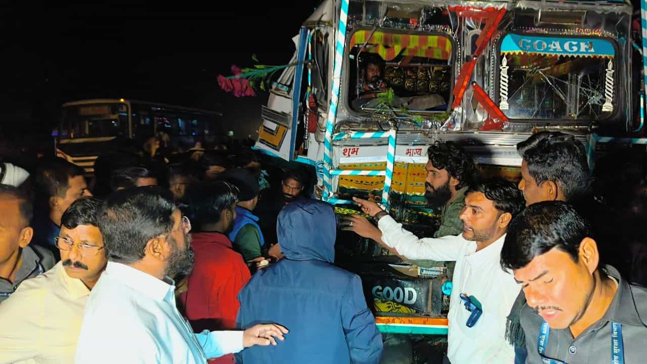 रवी खरात, Tv9 मराठी, नागपूर | 17 डिसेंबर 2023 : मुख्यमंत्री एकनाथ शिंदे हे देवदूताप्रमाणे धावून आल्याने एका व्यक्तीचे प्राण वाचले आहेत. या व्यक्तीसह अन्य तिघांना मदत करुन मुख्यमंत्र्यांनी त्यांना तत्काळ खाजगी रुग्णालयात दाखल केलं. मुख्यमंत्र्यांनी जखमींवर उपचार करण्याचे निर्देश संबंधित रुग्णालयातील डॉक्टरांना दिले. मुंबईहून नागपुरला परतल्यानंतर मुख्यमंत्री एकनाथ शिंदे यांनी तात्काळ बाजार गावातील सोलर अर्नामेंट्स कंपनीला भेट देऊन पाहणी केली. या घटनेचा आढावा घेऊन पुन्हा नागपुरकडे परतत असताना गोंडखैरीच्या बस स्थानकाजवळ एक अपघात झाल्याचे त्यांना समजले. याठिकाणी झालेल्या भीषण अपघातात एका ट्रक आणि बाईकची धडक होऊन बाईकचालक ट्रकच्या बोनेटमध्ये जाऊन अडकला होता. त्याचवेळी त्या ट्रकला एक वेगवान कारही येऊन धडकली. त्यातही गाडीतले काही जण जखमी झाले.