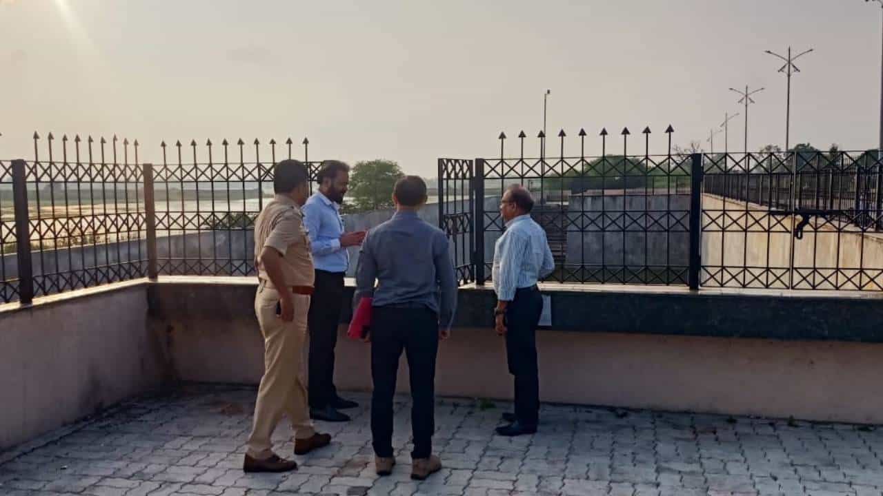 नागपूर : पर्यावरणपूरक गणेशोत्सवाच्या अनुषंगाने नागपूर शहरातील तलावात मूर्ती विसर्जनास बंदी आहे. परंतु, मनपाद्वारे चार फुटांवरील मूर्तींच्या विसर्जनासाठी व्यवस्था करण्यात आलेली आहे. कोराडी येथील तलाव (Koradi Lake) परिसरात असलेल्या मोठ्या कृत्रिम विसर्जन कुंडामध्ये मनपाद्वारे विसर्जनासाठी व्यवस्था करण्यात आली आहे. या विसर्जनस्थळाची गुरुवारी मनपा आयुक्त तथा प्रशासक आणि जिल्हाधिकारी डॉ. विपीन इटणकर (Dr. Vipin Itankar) यांनी पाहणी केली. यावेळी पोलीस अधीक्षक (Superintendent of Police) विजय मगर, मनपाचे अतिरिक्त आयुक्त राम जोशी, घनकचरा व्यवस्थापन विभागाचे संचालक व उपायुक्त डॉ. गजेंद्र महल्ले आदी उपस्थित होते.
