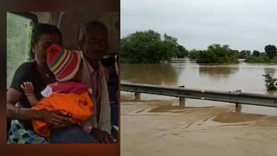 चंद्रपूर – जुलै महिन्यात मुसळधार पाऊस (Heavy rain) झाल्यानंतर पावसाने विश्रांती घेतली होती. परंतु मागच्या चार दिवसांपासुन सुरु झालेल्या पावसाने पुन्हा राज्यात (Maharashtra Rain Update) थैमान घालायला सुरुवात केली आहे. चंद्रपूर (Chandrapur) जिल्ह्यात जुलै महिन्यात आणि आता सुध्दा अतिवृष्टी सुरु असल्यामुळे लोकांना गावाच्या बाहेर दळणवळण किंवा अन्य कारणासाठी अवघड झालं आहे. गोंडपीपरी तालुक्यातील आडवळणाचा आर्वी गावात दीड वर्षाची चिमुकली तापाने फणफणत होती. त्यावेळी तिला रुग्णालयात न्यायला रस्ता नव्हता. तसेच चिमुकलीची तब्येत देखील ढासळत होती. त्यामुळे तिच्या आई वडिलांनी चार किलोमीटर जंगलातून वाट काढत रुग्णवाहिका गाठली. त्यानंतर मुलीला रुग्णालयात दाखल करण्यात आल्याची माहिती मिळाली आहे.