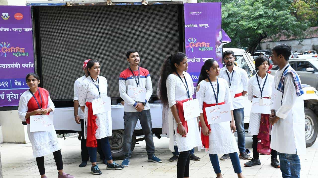 मनपा मुख्यालयातील छत्रपती शिवाजी महाराज प्रशासकीय इमारत परिसरात कार्यक्रम झाला. यावेळी समाजविकास विभागाचे उपायुक्त विजय हुमने, घनकचरा व्यवस्थापन संचालक डॉ. गजेंद्र महल्ले यांच्यासह समाजविकास विभागाचे अधिकारी उपस्थित होते. जनजागृती वाहनामध्ये एलईडी स्क्रीनची व्यवस्था आहे. यावरून स्वनिधी महोत्सवाची माहिती दिली जात आहे. शहरातील विविध भागांमध्ये जाऊन हे वाहन महोत्सवाच्या प्रचार आणि प्रसाराचे कार्य करीत आहे. सोबतच तिरपुडे समाजकार्य महाविद्यालयाचे अबोली कुशवाहा, प्रणव जोल्हे, प्रणव जुमडे, प्राची सिरसाट, रुनीचा पवार, हर्ष संतापे, हर्षा जोगे, सिद्धी पुरी, वैदेही क्षीरसागर, श्रुशीत सिरसाट हे विद्यार्थी पथनाट्याद्वारे जनजागृती सुद्धा करीत आहेत.
