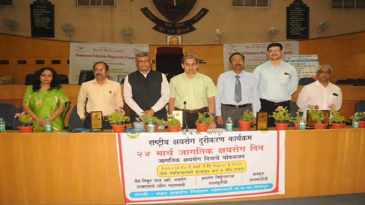 नागपूर महापालिकेच्या आरोग्य विभागाद्वारे जागतिक क्षयरोग दिनाच्या अनुषंगाने महाल येथील राजे रघुजी भोसले नगर भवन येथे क्षयरोग जनजागृती कार्यक्रम पार पडला. याप्रसंगी मेयोचे सहयोगी प्राध्यापक डॉ. ज्ञानशंकर मिश्रा, डॉ. राजेश बल्लाळ, डॉ. सय्यद तारिक, डॉ. झारीया, डॉ. शिल्पा जिचकार, शहर क्षयरोग अधिकारी मनपा, वैद्यकीय अधिकारी डॉ. व्ही. एम. महेश्वर, डॉ. सदफ खतिब व सर्व झोनल वैद्यकीय अधिकारी, आशा वर्कर्स आदी उपस्थित होते. प्रास्ताविक शहर क्षयरोग अधिकारी डॉ. शिल्पा जिचकार यांनी केले. यावेळी क्षयरोग दुरीकरण मोहिमेत उत्कृष्ट कार्य करणाऱ्या शासकीय तसेच खासगी डॉक्टर्स, अशा वर्कर्स, खासगी स्तरावरील केमिस्ट यांना मान्यवरांच्या हस्ते सन्मानचिन्ह देऊन गौरविण्यात आले.
