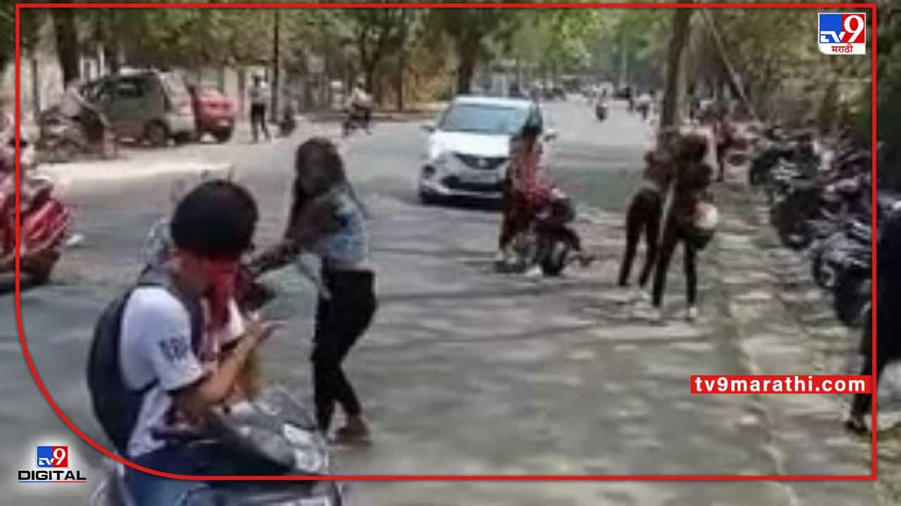 Video Nagpur freestyle | सात युवतींमध्ये जोरदार फ्रिस्टाईल, भर रस्त्यावर सुरू आहे झटापट, नागपुरात व्हिडीओ व्हायरल