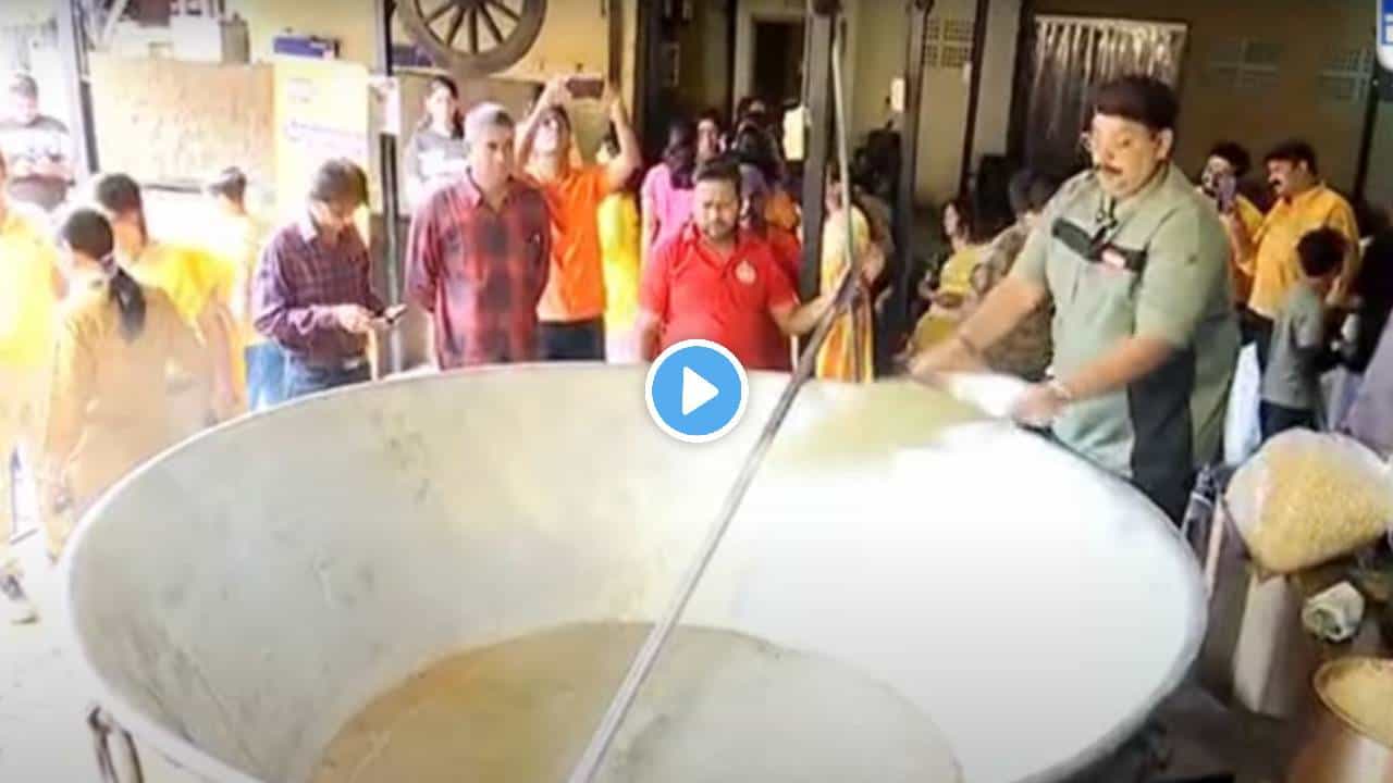 विष्णू मनोहर यांनी सोबत काही मदतनीस घेतले आहेत. त्यांच्या मदतीने ही पाककृती सुरू आहे. मोठ्या गॅसवर महाकाय कढई ठेवून त्यात कढी पत्ता, मसाले, शेंगदाणे, खोबरं आणि इतर मसाले सामुग्री टाकली जात आहे. हा मसाला स्वत: विष्णू मनोहर ढवळताना दिसत आहेत.
