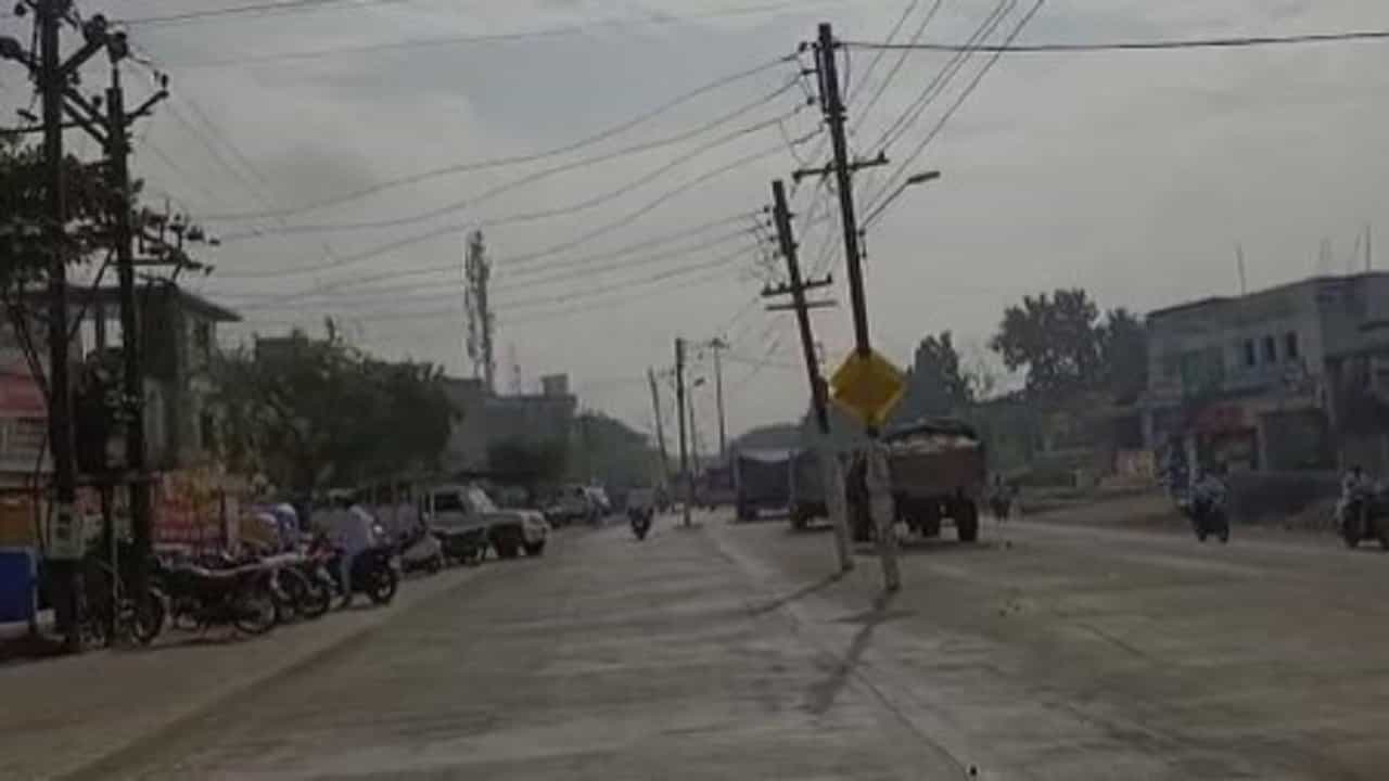 विजेचे खांब वाहतुकीस अडथळा