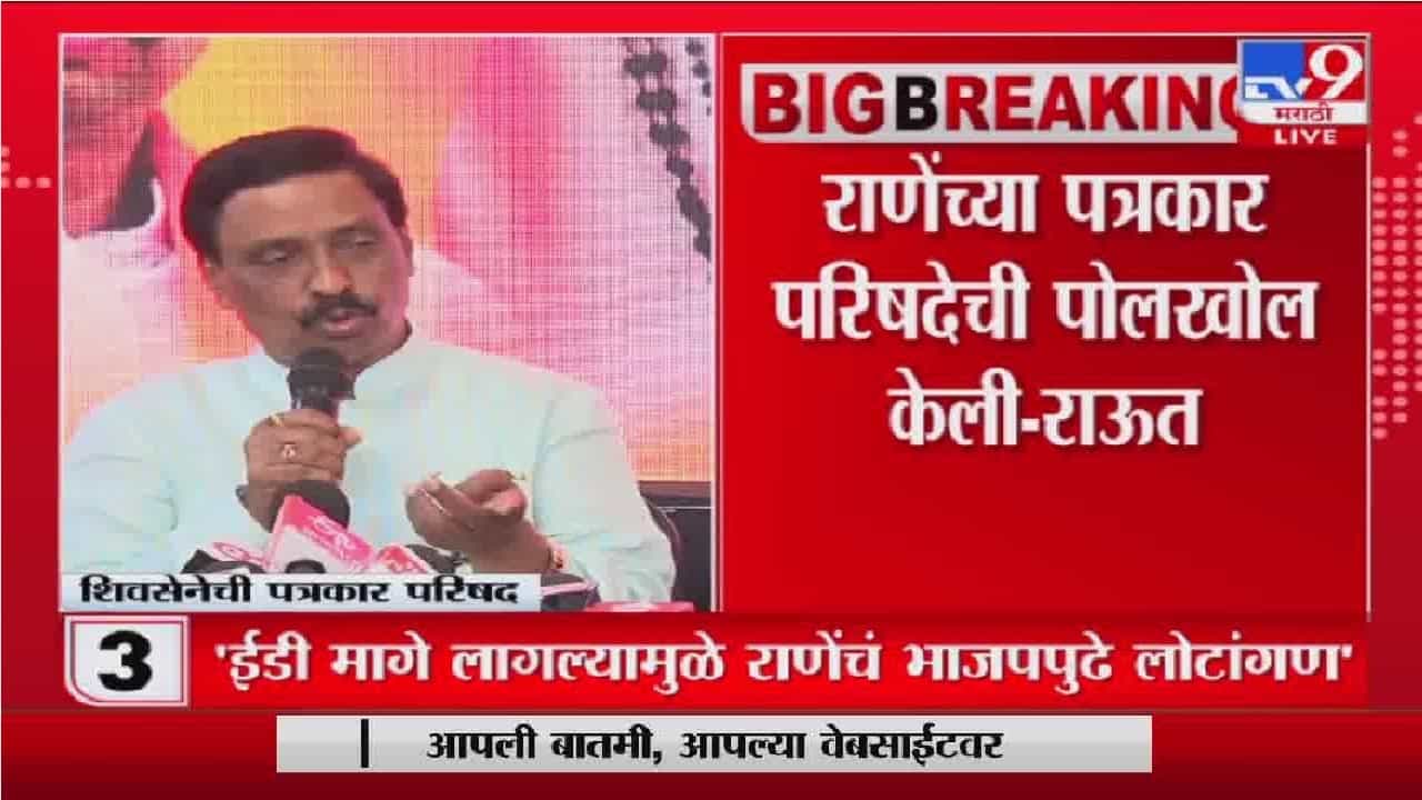 मुंबईः शिवसेना भवनातील संजय राऊत (Sanjay Raut) यांच्या वादळी झालेल्या पत्रकार परिषदेनंतर नारायण राणे यांची आज पत्रकार परिषद झाली होती. त्यानंतर काही वेळातच शिवसेने (Shivsena) पुन्हा एक पत्रकार परिषद घेत नारायण राणे (Narayan Rane) यांचे वाभाडे काढले. या विनायक राऊत यांनी जोरदार टीका करत बाळासाहेब ठाकरे यांचा दाखल देत शिवसेनेन नारायण राणे यांना मुख्यमंत्री केले असले तरी ते त्यांना कधीही बाळासाहेब ठाकरे यांनी त्यांना शिवसेनेचा नेता म्हटले नाही असे सांगत नेता होण्याची त्यांची लायकी नाही म्हणत पत्रकार परिषदेत राणे कुंटुंबीयावर टीका केली.