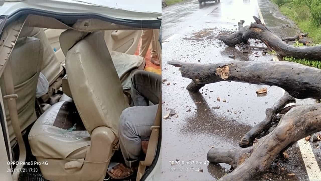 दुसरा अपघात दिंडोरी पोलीस ठाणे हद्दीत नाशिक-कळवण रस्त्यावरील वरखेडा फाट्याजवळ एका गाडीवर एक मोठं वाळळेलं झाड पडलं. त्यामुळे गाडीतील 3 जणांचा जागीच मृत्यू झाला. मृत्यू झालेले तिघेही शिक्षक होते. त्यात दत्तात्रय गोकुळ बच्छाव (51, रा.नाशिक), रामजी देवराम भोये (49), नितीन सोमा तायडे (32 रा.तारवला नगर,पंचवटी) यांचा समावेश आहे.