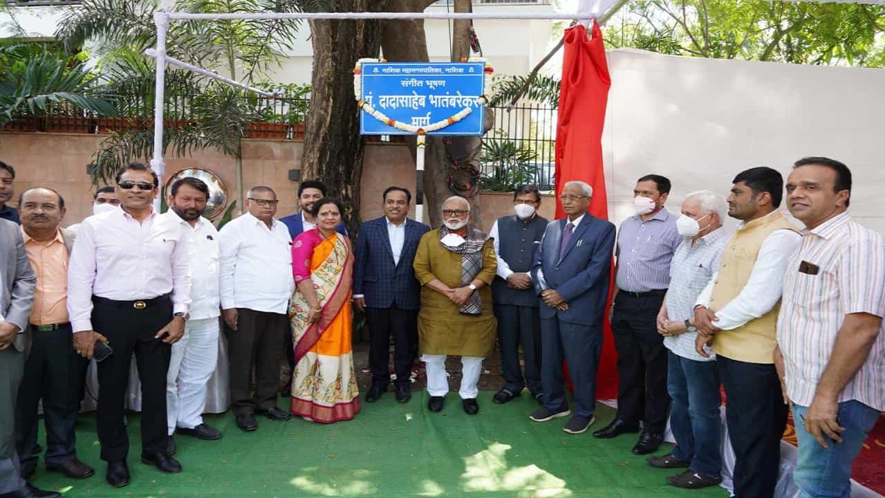 नाशिकः नाशिकमध्ये (Nashik) वीसे मळा, कॉलेज रोड येथील सहजीवन कॉलनीतील मार्गाला महापालिकेच्या (Municipal Corporation) वतीने दादासाहेब भातंबरेकर यांचे नाव देण्यात आले. राज्याचे अन्न, नागरी पुरवठा व ग्राहक संरक्षण मंत्री तथा जिल्ह्याचे पालकमंत्री छगन भुजबळ (Chhagan Bhujbal) यांच्या उपस्थितीत हा कार्यक्रम झाला. संगीत भूषण पंडित दादासाहेब भातंबरेकर म्हणजे संगीत क्षेत्रातील एक दिग्गज व्यक्तीमत्व असून, त्यांचे संगीत क्षेत्रातील योगदान उल्लेखनीय आहे. या कार्यक्रमाला महापौर सतीश कुलकर्णी, आमदार प्रा. देवयानी फरांदे, डॉ. एम. एस. गोसावी, माजी आमदार हेमंत टकले, जयंतराव जाधव, नाशिक महानगरपालिका आयुक्त कैलास जाधव, पोलीस उपायुक्त पौर्णिमा चौघुले, शैलेश कुटे, नगसेवक जॉय कांबळे, शाहू खैरे, शिवाजी गांगुर्डे, जेष्ठ संगीतकार डॉ.अविराज तायडे यांच्यासह नागरिक मोठ्या संख्येने उपस्थित होते.