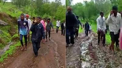 नाशिक : ग्रामीण भागात आदिवासी वस्ती आहे. या वस्त्यांमध्ये जाण्यासाठी रस्ते नाहीत. त्यामुळे पावसाळ्यात मोठी अडचण निर्माण होते. नुकतीच एक मोठी घटना घडली. एका आदिवासी वस्तीतील महिलेला रात्री प्रसुतीवेदना सुरू झाल्या. नातेवाईकांनी रुग्णालयात नेण्याचा निर्धार केला. पण, रुग्णालयात जाण्यायोग्य रस्ते नव्हते. रुग्णवाहिका किंवा कोणतेही वाहन त्या गावातून रुग्णालयापर्यंत जाऊ शकत नव्हते. त्यामुळे नातेवाईकांनी डोली तयार केली. त्या डोलीतून महिलेचा प्रवास सुरू झाला. रुग्णालयात जाईपर्यंत अडीच किलोमीटरचा रात्री पायी प्रवास करण्यात आला. रुग्णालयात जाण्यापर्यंत महिलेचा मृत्यू झाला. त्यानंतर मृतदेह परत आणण्यासाठी पुन्हा डोलीचाच वापर करावा लागला. या घटनेमुळे आदिवासी नागरिकांमध्ये प्रचंड संताप व्यक्त केला जातो.