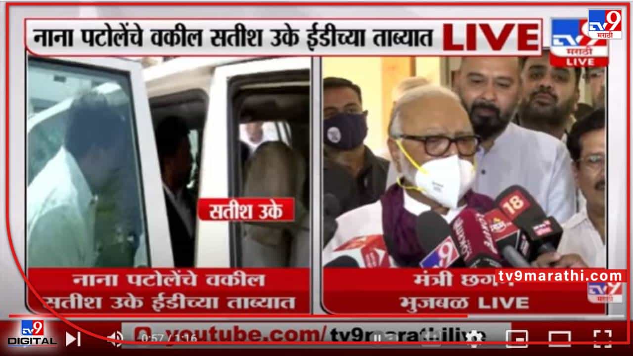 नाशिकः भाजपच्या नेत्यांना नोटीस पाठवली की, राज्य सरकारकडून अत्याचार होतोय म्हणून कांगावा केला जातो. मात्र, आम्ही काही कुठे बोलले की थेट कारवाई होते. आता या प्रकरणात पंतप्रधान नरेंद्र मोदी आणि गृहमंत्री अमित शाह यांनी लक्ष घालावे. हा अतिरेक थांबवावा, असे आवाहन मंत्री छगन भुजबळ (Chhagan Bhujbal) यांनी केले. ते नाशिकमध्ये बोलत होते. काँग्रेस आणि नाना पटोले यांचे निकटवर्तीय म्हणून ओळखले जाणारे प्रसिद्ध वकील सतीश उके यांच्या घरी आज ईडीने धाड टाकली. उके यांचे सकाळपासून चौकशी सुरू होती. त्यानंतर आता ईडीने सतीश उके (Satish Uke) यांना ताब्यात घेतले आहे. सतीश उके हे नाना पटोले यांचे वकील आहेत. माजी मुख्यमंत्री देवेंद्र फडणवीस (Devendra Fadnavis) यांच्या सांगण्यानुसार ही सर्व कारवाई होत आहे, असा आरोप उके यांच्या कुटुंबीयांनी केलाय. विशेष म्हणजे लोहिया प्रकरण तसेच निमगडे हत्याकांडप्रकरणी उके हे वकील आहेत. या कारवाईवरून पुन्हा एकदा सरकार विरुद्ध विरोधक अशी खडाजंगी पाहायला मिळतेय. या साऱ्या प्रकरणाचा संदर्भ घेत भुजबळांनी हे आवाहन केले.