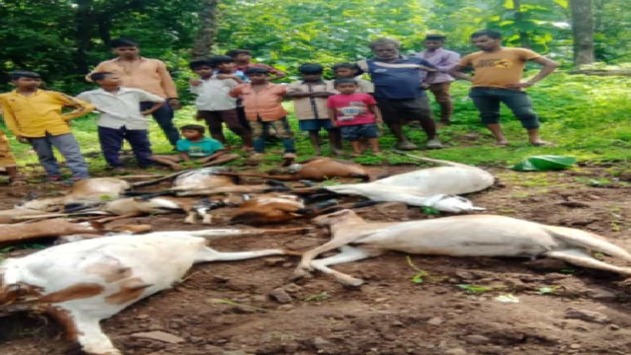 गावानजीकच बिबट्याने बकऱ्यांवर हल्ला चढवला. त्या हल्ल्यात 13 बकऱ्यांचा मृत्यू झाला आहे. गावानजीक जंगल परिसर असल्याने बिबट्याचा सतत वावर आहे. त्यामुळे नागरिकांमध्ये भीतीचे वातावरण निर्माण झालंय. परिसरात वनविभागाने पिंजरा लावण्याची ग्रामस्थांनी मागणी केलीये.