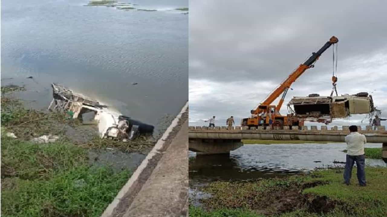 पिकअप जीप नदीत कोसळ्यानं दोघांचा मृत्यू झाला तर 8 जण जखमी झाले आहेत. चिमुकली सई विकास देवकर , मधुकर घुले ही मृत झालेल्या दोघांची नावं आहेत.