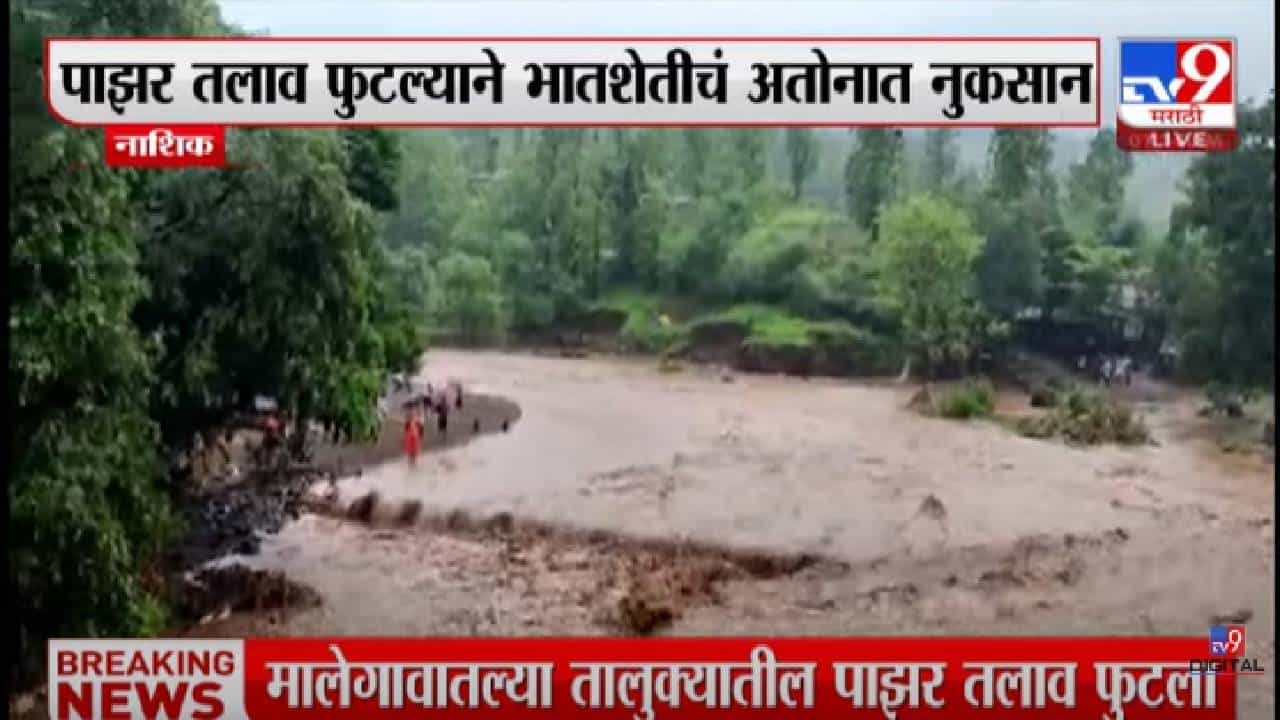 नाशिक : नाशिक (Nashik) जिल्हात गेल्या दोन दिवसांपासून जोरदार पावसाने हजेरी लावलीयं. या पावसामुळे धरणसाठ्यात मोठी वाढ झाली असून पाणीटंचाईपासून नाशिककरांना मोठा दिलासा मिळालायं. मात्र, या पावसामुळे (Rain) सुरगाणा तालुक्यातील अंलगुण येथील पाझर तलाव फुटल्याने मोठे नुकसान झाले आहे. पाझर तलाव फुटल्याने विशेष: भात शेतीचे नुकसान (Damage) झाले असून नागरिकांच्या घरामध्ये पाणी शिरले आहे. काही जणावरही या पाण्यासोबत वाहून गेल्याचे सांगितले जात आहे.