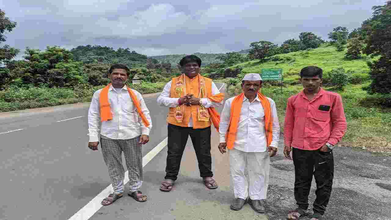 इगतपुरी / शैलेश पुरोहित : सर्वसामान्य शिवसैनिकांचे प्रश्न मांडण्यासाठी आणि इतर मागण्या घेऊन गंगापूर तालुक्यातील शिवसैनिकांनी 400 किलोमीटरचा पायी प्रवास सुरू केला आहे. या प्रवासानंतर हे शिवसैनिक मुंबईत मुख्यमंत्री उद्धव ठाकरे यांना भेटणार आहेत. शिवसैनिकांचा 400 किलोमीटर पायी यात्रा गंगापूर तालुक्यातील सावखेडा येथील राजूशेठ जैस्वाल यांच्यासह रामनाथ लक्ष्मण मोरे, ज्ञानेश्वर विनायक अदमाने, नवनाथ शिवाजी शेवाळे या शिवसैनिकांनी सावखेडा गंगापूर ते मुंबई मातोश्री असा 400 किलोमीटर पायी प्रवास सुरू केला आहे. आज हे शिवसैनिक इगतपुरीत दाखल झाले. इगतपुरीतील शिवसैनिक भूषण जाधव व मनसैनिक राज जावरे यांनी मित्र मंडळींसह यांचे स्वागत करत, पुढील प्रवासाच्या शुभेच्छा दिल्या. (Shiv Sainiks set off on foot 400 km “Matoshri”; Various issues will be presented to the party leaders)