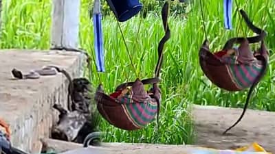 हे घर तसं शेतात आहे, असंच दिसतंय. हा व्हिडीओ नाशिक जिल्ह्यातील असल्याचं सांगण्यात येत आहे. जून महिन्यात मोठ्या प्रमाणात साप हे बिळाबाहेर येतात. मुंगूस हा प्राणी सापाच्या मागेच असतो. हा साप बाळाच्या झोळीला लटकला यानंतर झोक्याच्या दोरीवर चढत, त्याने कपडे वाळवण्यासाठी जी दोरी लावली होती तिथपर्यंत जाण्याचा प्रयत्न केला.