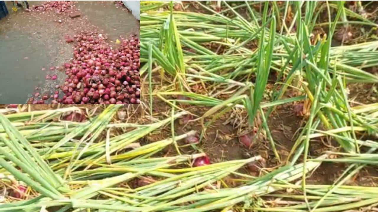 गेली तीन महिने शेतात राब राब मेहनत करून रात्र – पहाट न बघता कांद्याला पाणी भरलं… एकरी चाळीस ते पन्नास हजार रुपये खर्च करून पोटच्या लेकराप्रमाने कांदा पीक आणि इतर पिके सांभाळली… पीक हाताशी आलं अन् सारं काही निसर्गाने हिरावून नेलं… अवकाळीने होत्याच नव्हतं केलं… शेतातील उभी पिके आणि काढणीला आलेला कांदा तसेच शेतात काढून ठेवलेला कांदा सडू लागला आहे… तोंडाशी आलेला घास निसर्ग हिरावून घेत असल्याने शेतकरी वर्ग व्यथित झाला आहे.