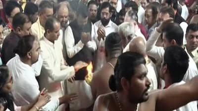 नवी मुंबई : आता तिरुपती बालाजी मंदिराचं दर्शन घेण्यासाठी आंध्रप्रदेशात जाण्याची गरज नाही. महाराष्ट्रातील जनतेला आता नवी मुंबईतच तिरुपती बालाजीचं दर्शन घेता येणार आहे. नवी मुंबईतल्या उलवेनोडमध्ये तिरुपती बालाजीचं भव्य मंदिर बांधण्यात येणार आहे. मुख्यमंत्री एकनाथ शिंदे यांच्या हस्ते आज सकाळी सकाळीच प्रति तिरुपती बालाजी मंदिराचं भूमिपूजन करण्यात आलं. यावेळी उपमुख्यमंत्री देवेंद्र फडणवीस यांच्यासह राज्य मंत्रिमंडळातील मंत्री, नवी मुंबईतील आमदार, खासदार आणि स्थानिक नेते मोठ्या प्रमाणावर उपस्थित होते.
