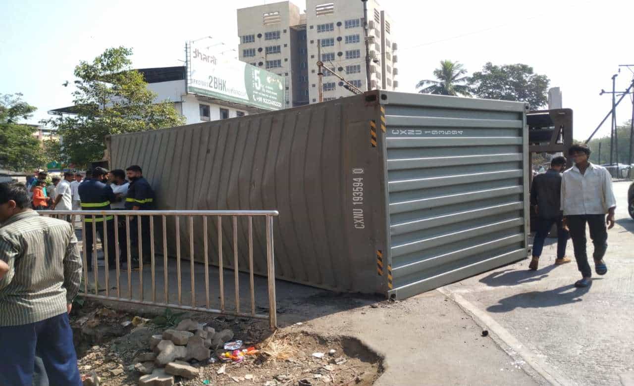 दुचाकीस्वाराला वाचवण्याच्या नादात कंटेनर उलटला, नवी मुंबईतल्या पाम बीचवर मोठा अपघात