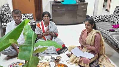 नवी मुंबई : गणेशोत्सव काही दिवसांवर येऊन ठेपला आहे. प्रत्येक घराघरात बाप्पा येणार म्हणून साफसफाईची रेलचेल सुरू आहे, खरेदी साठी ग्राहक येणार म्हणून बाजारपेठा सुद्धा सजल्या आहेत. यंदा सार्वजनिक गणेशोत्सव कमी असले तरी घरोघरी गणपती बसवणाऱ्यांची संख्या मात्र दुपटीने वाढणार यात शंका नाही. बाप्पा घरी येणार म्हणून प्रत्येक जण आपली प्लॅनिंग करतोय, मग ते डेकोरेशन असो किंवा पूजेचं साहित्य. आणि हो भटजी ( पुरोहित ) हवेच ना ! गणेश चतुर्थीच्या दिवशी गणेशाची प्रतिष्ठापना करणारी पूजा महत्त्वाची मानली जाते. गणेशोत्सवाच्या काळात पुरोहितांचा दिवस पहाटे दोन वाजता उगवतो. पहाटे तीन वाजल्यापासून दुपारी चार वाजेपर्यंत या पूजा चालतात. एका पुरोहिताच्या 10 ते 12 शास्त्रोक्त पूजा सांगून होतात. पौरोहित्य ही पुरुषांची मक्तेदारी आहे. हा समज आता महिलांनी मोडून काढलेला आहे. (Ganpati will be inaugurated by a woman priest in Panvel Navi Mumbai)