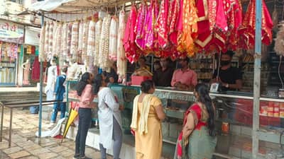 गणेशोत्सव काही दिवसांवर येऊन ठेपला आहे. बाप्पांच्या स्वागतासाठी पूजेचे साहित्य आणि सजावटीच्या वस्तूंनी बजारपेठे फुलली आहे. गणेशोत्सवासाठी लागाणाऱ्या पूजेच्या साहित्य घेण्यासाठी नागरिकांनी एकच गर्दी केलेली पाहायला मिळाली. गोकुळाष्टमी पासून पूजेच्या साहित्यांची खरेदी चांगली सुरु झाली आहे. पूजेच्या वस्तू आणि साहित्यात थोडाफार प्रमाणात भाव वाढ सुद्धा झाली आहे. मात्र याचा परिणाम खरेदीवर होणार नाही. तसेच ग्राहकांची संख्या वाढली आहे त्यामुळे यंदा मागच्या वर्षीच्या तुलनेत व्यवसाय चांगला असेल अशी प्रतिक्रिया दुकानदारांनी दिली.