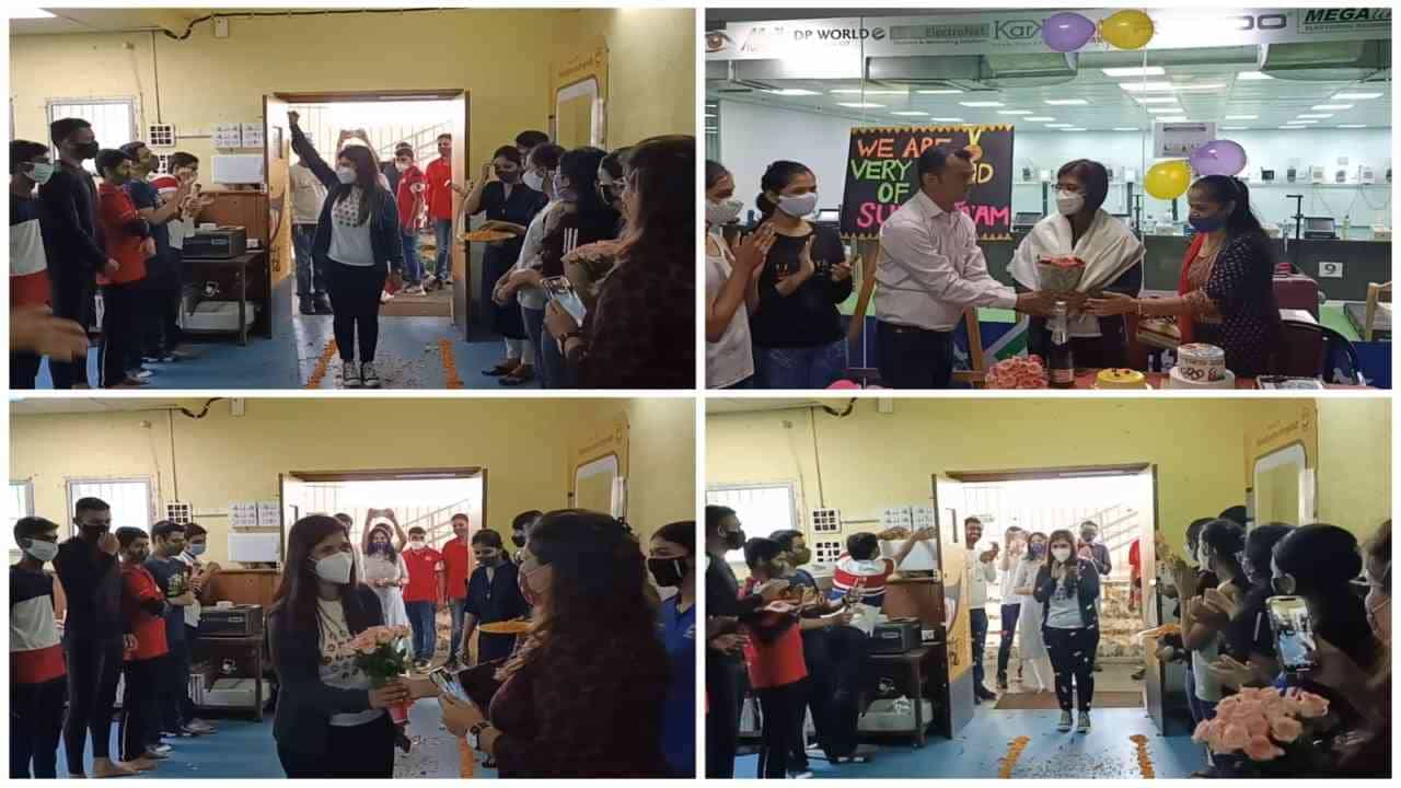 पनवेलच्या कर्नाळा स्पोर्ट्स कॉम्प्लेक्समधील लक्ष्य नेमबाजी क्लबमध्ये विद्यार्थी सुमा शिरूर यांची आतुरतेने वाट पाहत होते. सुमा शिरूर यांनी प्रवेश करताच विद्यार्थ्यांनी पुष्प वृष्टी करत टाळ्या वाजवत सुमा यांचे स्वागत केले. यावेळी विद्यार्थ्यांसह त्यांच्या पालकांनी हजेरी लावली. यावेळी केक कापत मिळालेल्या यशाचे थ्री चिअर्स करत सेलिब्रेशन करण्यात आले.