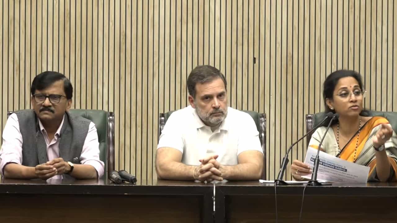 राज्यातील विधानसभा निवडणूक झाल्यानंतर चार महिन्यांपेक्षा जास्त कालावधी उलटला आहे. मात्र आता या निकालावर अनेकांनी संशय व्यक्त केला आहे. विरोधकांकडून सातत्याने ईव्हीएममध्ये फेरफार झाल्याचा आरोप केला जातो. आता काँग्रेस नेते आणि खासदार राहुल गांधी यांनी निवडणूक आयोगाला अनेक सवाल विचारले. आम्ही निवडणूक आयोगावर आरोप करत नाही. आम्ही आरोप केले पाहिजे. पण आरोप करत नाही. फक्त आम्हाला लोकसभा आणि विधानसभेची मतदार यादी निवडणूक आयोगाने द्यावी. नाव, पत्ता आणि फोटोग्राफसह द्यावी, अशी मागणी राहुल गांधींनी केली. यावेळी खासदार सुप्रिया सुळे, खासदार संजय राऊतही उपस्थित होते.