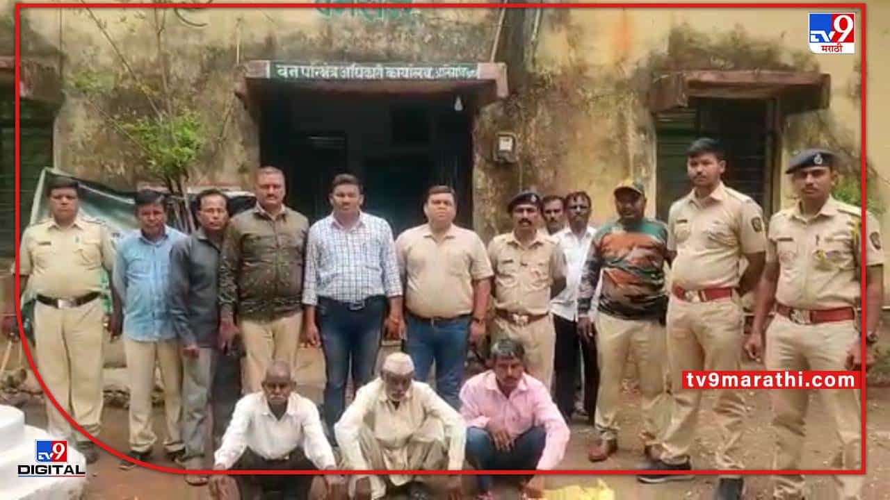 तीन जणांना अटक करण्यात आली. त्यांच्याकडं युरियाचं पोतं सापडलं. रक्तानं भरलेला सुराही सापडला. शिवाय कुऱ्हाड, कोयता असे शस्त्र जप्त करण्यात आले. हे शिकारी प्राण्यांचे मांस विकायचे. तसेच कातड्याचीही विल्हेवाट लावायचे.