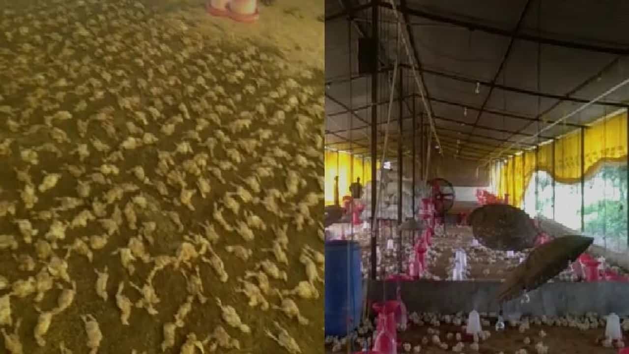 (Akola 900 hens of man who runs poultry farm in Murtijapur have been died due to heavy rain demand compensation)