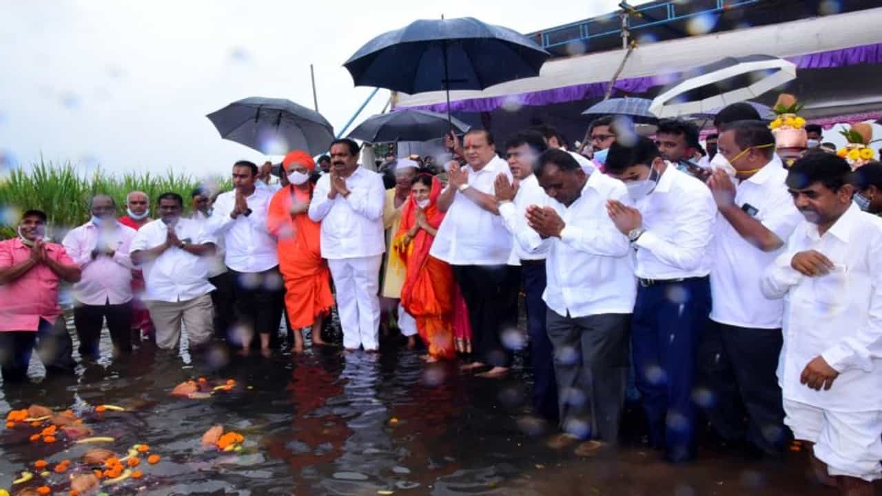 कार्यक्रमाच्या अध्यक्षस्थानी ग्रामविकास मंत्री हसन मुश्रीफ होते. यावेळी खासदार संजय मंडलिक, आमदार प्रकाश आबीटकर,आमदार राजेश पाटील, आमदार ऋतुराज पाटील, माजी आमदार संध्यादेवी कुपेकर, माजी आमदार संजय घाटगे, पंचम शिवलिंगेश्वर महास्वामीजी, महाराष्ट्र कृष्णा खोरे विकास महामंडळाचे कार्यकारी संचालक विलास राजपूत, जलसंपदा विभागाचे मुख्य अभियंता हणमंत गुणाले, अप्पर जिल्हाधिकारी किशोर पवार, उपविभागीय अधिकारी बाबासाहेब वाघमोडे, जिल्हा पुनर्वसन अधिकारी अश्विनी जिरंगे, पाटबंधारे कोल्हापूर मंडळाचे अधीक्षक अभियंता महेश सुर्वे, कार्यकारी अभियंता स्मिता माने, रोहित बांदिवडेकर, एस.आर. पाटील, अमोल नाईक, डी. डी. शिंदे, उपविभागीय अभियंता दिनेश खट्टे आदी मान्यवर उपस्थित होते.