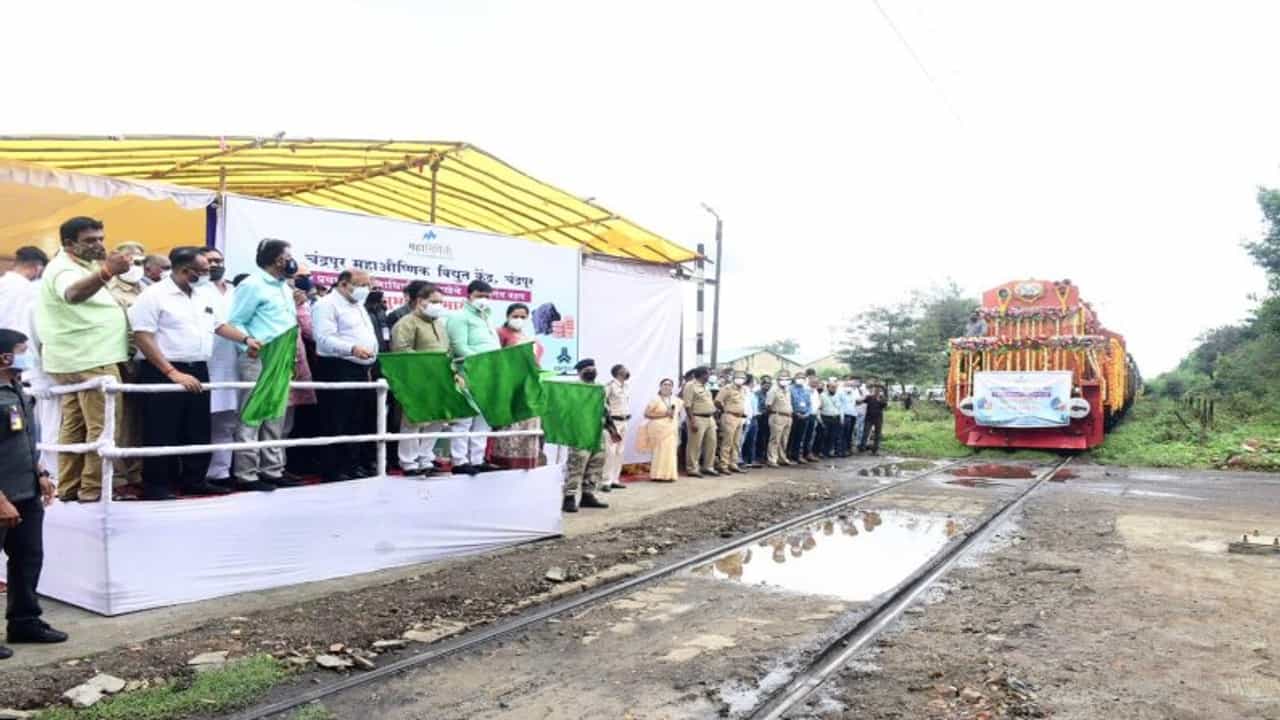 चंद्रपूर वीज केंद्रातील राखेचे रेल्वेद्वारा वहन, उर्जामंत्री राऊतांच्या हस्ते हिरवी झेंडी