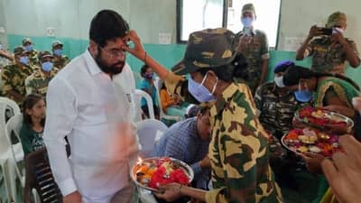पालकमंत्री एकनाथ शिंदे यांनी एटापल्लीतील हेडरी येथे पोलीस भगिनी व स्थानिकांसोबत रक्षाबंधनाचा सण साजरा केला.