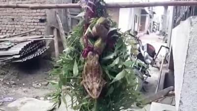 अकोला : जिल्हासह वाडेगाव परिसरात गेल्या अनेक दिवसांपासून पावसाने दडी मारल्याने अनेक जण ‘मुसळधार पाऊस बरसू दे आणि शेतकऱ्याचं रान हिरवंगार होऊ दे’, अशी प्रार्थना परमेश्वराकडे करत आहेत. तर काहींनी धोंडी धोंडी पाणी दे म्हणत वरुणराजाला साकडं घालत आहेत. (Farmers of Akola district pray to God for rain)