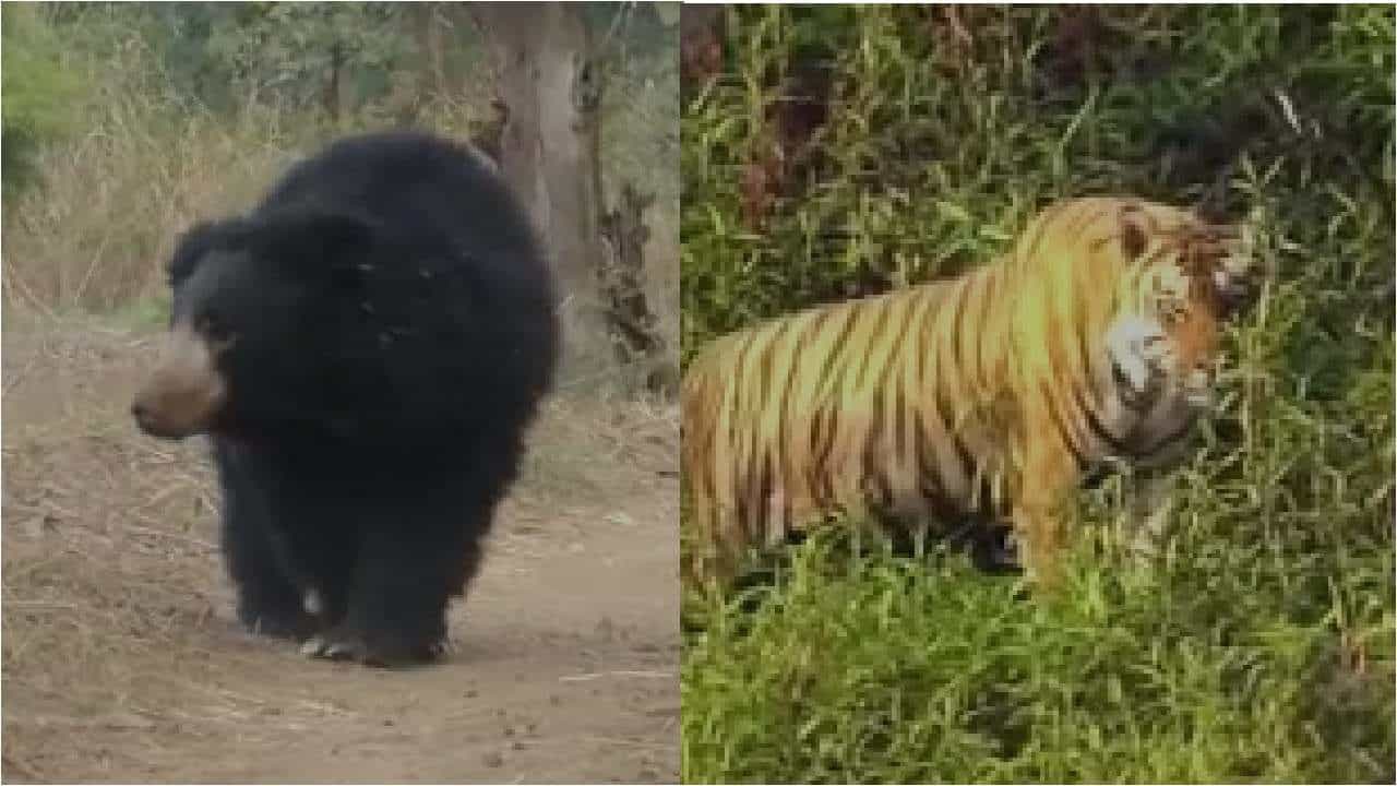 वाढत्या उन्हामुळं प्राणी पाण्यासाठी जंगलाबाहेर पडू लागले आहेत. त्यामुळं प्राण्यांचा मुक्ससंचार दिसत आहे. वाघांसह अस्वलाचा मुक्तसंचार कॅमेऱ्यात कैद झालाय.