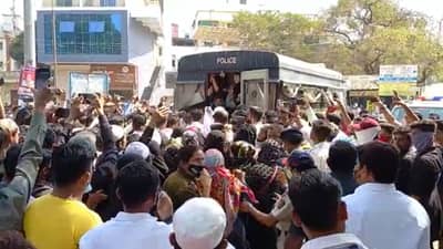 सोलापूर: कर्नाटकातील (Karnataka) शाळांमध्ये हिजाब घालण्यावरून रणकंदन सुरू आहे. हिजाबच्या (Hijab Controversy) मुद्द्यावरून मुस्लिम विद्यार्थीनी आणि हिंदुत्ववादी संघटना आमनेसामने आल्या आहेत. हा वाद इतका पेटला असून खुद्द कर्नाटक सरकारला तीन दिवस राज्यातील शाळा बंद ठेवण्याचे आदेश काढावे लागले आहेत. कर्नाटकमधील हा वाद सुरू असतानाच महाराष्ट्रातही हिजाबच्या वादाचं लोण पोहोचलं आहे. सोलापुरात (solapur) आज हिजाबच्या समर्थनार्थ मोठं आंदोलन करण्यता आलं. महाराष्ट्र-कर्नाटकाच्या सीमेवर प्रहार जनशक्ती संघटनेने आज जोरदार रास्तारोको केला. यावेळी शेकडो कार्यकर्ते जमा झाले होते. या रास्तारोको आंदोलनामुळे या महामार्गावरची वाहतूक काही काळ खोळंबली होती. आंदोलक जोरजोरात घोषणा देत गाड्या अडवतानाही दिसत होते. त्यामुळे प्रवाशांचा चांगलाच खोळंबा झाला. यावेळी पोलिसांचा मोठा बंदोबस्त ठेवण्यात आला होता.