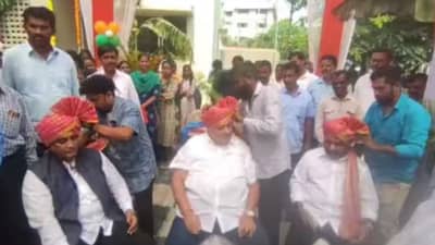 दरम्यान, धनंजय महाडिक, हसन मुश्रीफ आणि सतेज पाटील यांचा एकाचवेळी फेटा बांधत असल्याचा व्हिडीओ सोशल मीडियावर तुफान व्हायरल होतोय. या व्हिडीओत एकीकडे धनंजय महाडिक फेटा बांधण्यासाठी बसले आहेत. त्यांच्या बाजूला हसन मुश्रीफ आहेत. तर तिसऱ्या बाजूला खुर्चीवर सतेज पाटील बसले आहेत. या तीनही बड्या नेत्यांचा फेटा बांधत असल्याचा व्हिडीओ सोशल मीडियावर चांगलाच व्हायरल होत आहे.