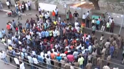 तरुणांचा एवढा मोठा जमाव जमलेला पाहून पोलीस प्रशासन देखील सतर्क झालं आहे. गर्दीत कोणताही अनुचित प्रकार घडू नये यासाठी पोलिसांचा मोठा फौजफाटा तैनात करण्यात आला आहे. पोलिसांकडून आक्रमक कार्यकर्त्यांना शांत होण्याचं आवाहन केलं जात आहे.