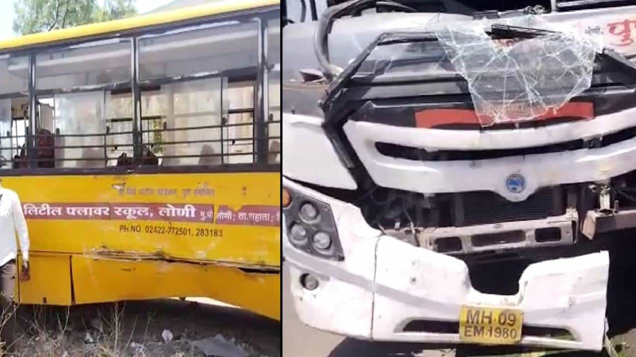 शिर्डीहून पुण्याकडे जाणाऱ्या शिवशाही बसने रस्ता ओलांडत असलेल्या लिटील फ्लॉवर स्कुलच्या बसला जोराची धडक दिली. शिवशाही बस दुसर्या गाडीला ओव्हरटेक करण्याच्या प्रयत्नात स्कूल बसवर जाऊन धडकली. अपघाताची माहिती मिळताच पोलीस घटनास्थळी पोहचले. पोलिसांनी अपघाताचा तपास सुरू केला आहे. दोषींविरोधात गुन्हा दाखल केला जाणार आहे.