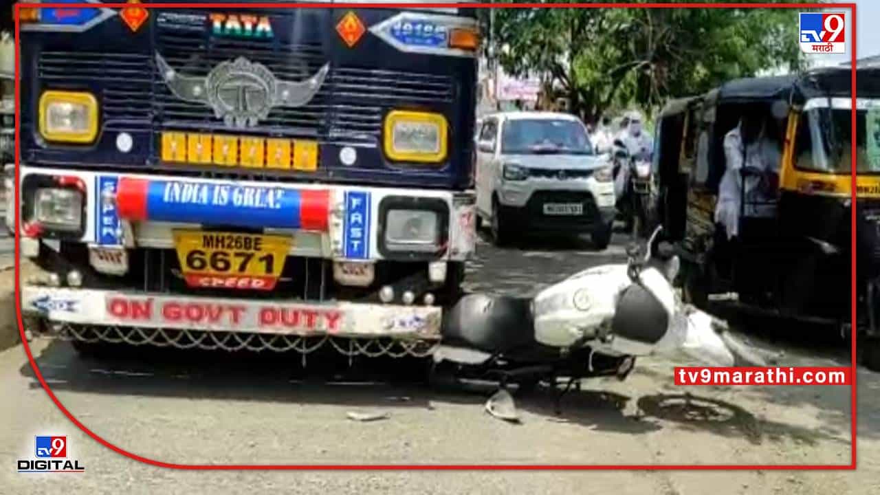 नांदेड : नांदेडहून त्रिकुटकडे जाणाऱ्या दुचाकीला खाजगी बसने धडक दिली. यात एक 22 वर्षीय गरोदर महिला ठार झाली तर अन्य दोनजण जखमी झाले. मंगळवारी दुपारी शहराजवळील माळटेकडी पेट्रोल पंपासमोर (in front of petrol pump) हा अपघात घडला. शिवाजी डांगे हे पत्नीसह आणि चंद्रकांत मोरे हे तिघे एका दुचाकीवरून जात होते. पेट्रोल पंपाजवळ दुचाकी रस्ता ओलांडताना भरधाव आलेल्या खाजगी बसने त्यांना चिरडले. दुचाकीला बसने चिरडलेला क्षण सीसीटीव्हीत कैद झालाय. या अपघातात इंदूबाई ही गरोदर महिला चिरडल्या गेल्याने जागीच ठार झालीय, तर दोन जण जखमी झालेत. शिवाजी डांगे व चंद्रकांत मोरे अशी जखमींची नाव आहेत. दुचाकी ट्रकखाली (under two-wheeler truck) आली. जखमीच्या पायाला लागले. अपघातानंतर काही काळ वाहतूक खोळंबली (traffic jammed ) होती.