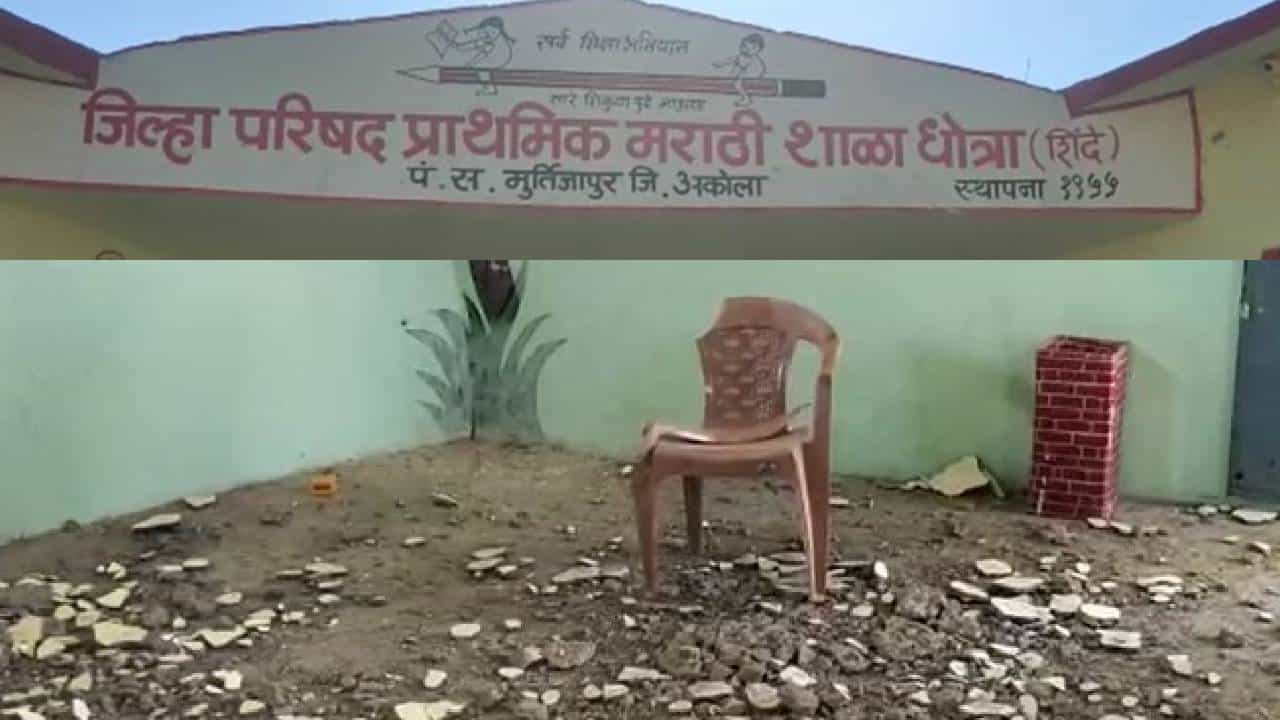 अकोला : अकोला जिल्हातल्या मूर्तिजापूर तालुक्यात अनेक शाळा जीर्ण झाल्या आहेत. तर काही दहा-बारा वर्षांपूर्वी बांधण्यात आलेल्या शाळेचे बांधकाम निकृष्ट दर्जाचे आहे. त्यामुळे विद्यार्थ्यांना जीव धोक्यात घालून शिक्षण घ्यावे लागत असल्याचे वास्तव आहे. मूर्तिजापूर तालुक्यातल्या धोत्रा शिंदे येथील जिल्हा परिषद शाळेच्या छताच्या प्लॅस्टरचा मलबा काल रात्री कोसळला. या घटनेमुळे शाळा बांधकामाबाबत प्रश्न निर्माण होत आहे. रात्रीच्या वेळी घटना घडल्याने सुदैवाने जीवितहानी टळली. पंचायत समिती अंतर्गत ग्राम धोतरा शिंदे येथील जिल्हा परिषद मराठी शाळेचा रात्रीच्या वेळेस छताचे प्लॅस्टर कोसळले.