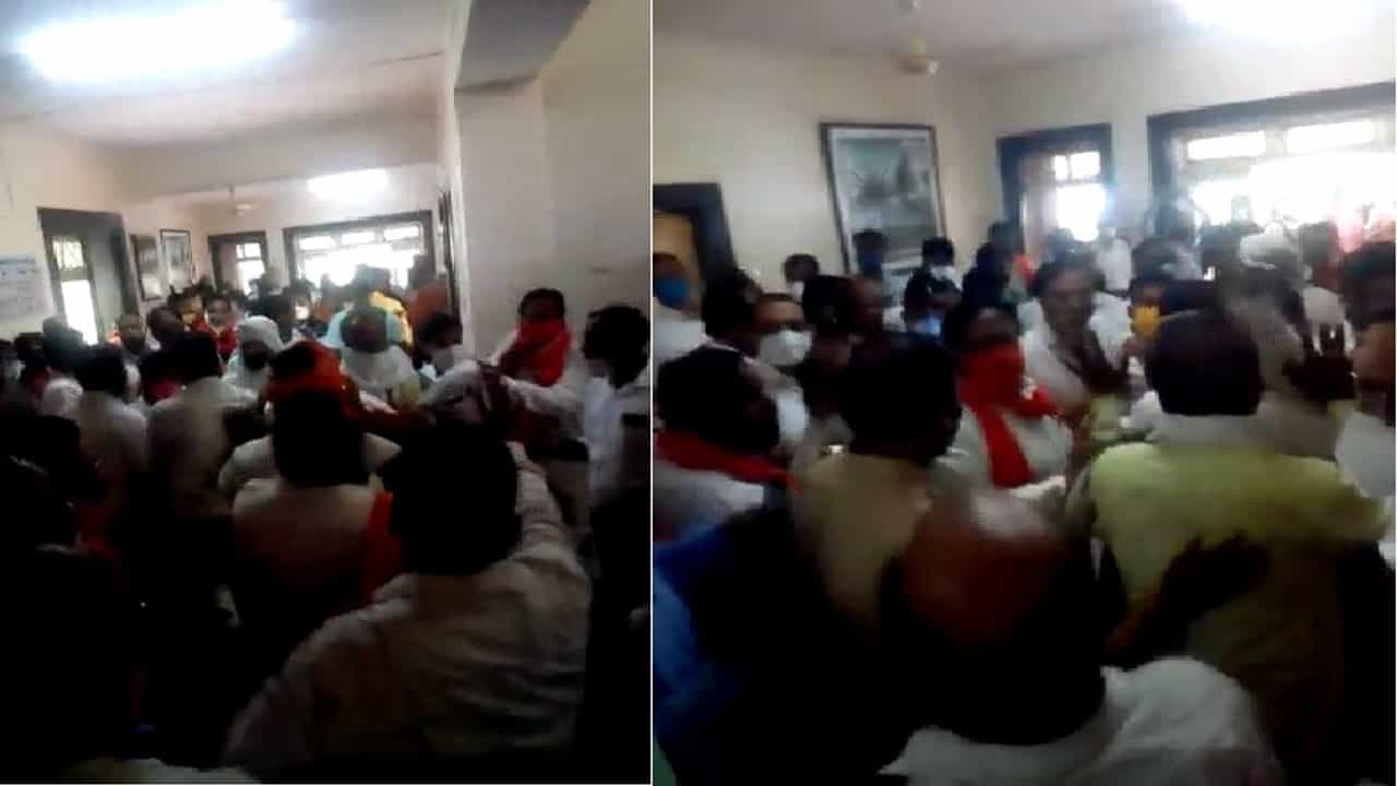 मास्क न लावल्यावरुन शिवसैनिक आपापसात भिडल्याचा दावा, उच्च आणि तंत्र शिक्षण मंत्री आणि शिवसेना नेते उदय सामंत उदय सामंत यांच्यासमोरच वर्ध्यातील प्रकार pic.twitter.com/6x4MsCbmCQ