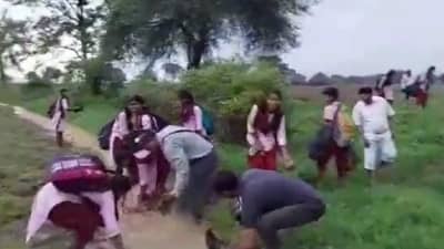 विद्यार्थी शिवाजी काळे म्हणाला, पुलाचे काम सुरू असल्याने आम्हाला रपटा बनवून दिला आहे. आम्ही मातरा येथून गोवरी येथे शिकायला जातो. रपटा पावसामुळे वाहून गेला आहे. बस गावात येऊ शकत नाही. त्यामुळे विद्यार्थ्यांना शेतातून पायी वाट काढून शाळेत जावे लागते.