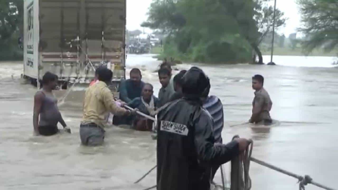 बुलडाणा जिल्ह्याच्या चिखली तालुक्यातील उत्तरादा पेठच्या पुलावरुन पाणी वाहत असताना पार्सल घेऊन जाणारा कंटेनर पुलावर अगदी मधोमध अडकला. या कंटेनरमध्ये चालकासह त्यांचा मुलगाही होता. या घटनेची माहिती चिखली तहसीलचे नायब तहसीलदार हरी वीर आणि अमडापूर पोलीस ठाण्याचे ठाणेदार नागेशकुमार चतरकर यांना स्थानिक नागरिकांनी दिली. यावेळी नायब तहसीलदार वीर आणि ठाणेदार चतरकर यांनी समन्वय साधून आपल्या टीम सह घटनास्थळाकडे धाव घेतली. तर त्यांच्या मदतीला दहिगाव येथील तरुण ही धावले.