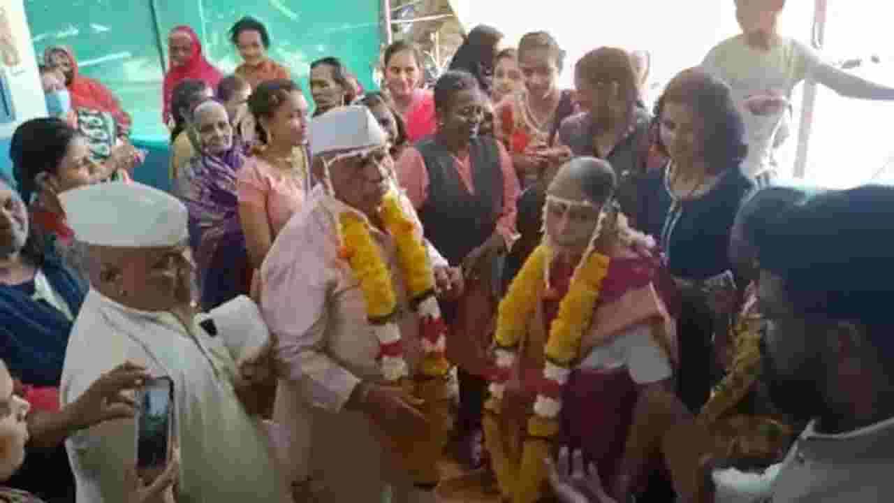 सांगली : सांगलीच्या मिरज येथील आस्था बेघर महिला केंद्रात एक आगळा वेगळा विवाह संपन्न झाला. यापूर्वी अनाथ निराधार मुलींचे विवाह झालेले आहेत. परंतु बेघर केंद्रातील आश्रित असलेल्या 66 वर्षाच्या शालन यांचा 79 वर्षीय दादासाहेब साळुंखे यांच्याशी विवाह संपन्न झाला. एका बेघर वृद्धाला आसरा देण्याचा आनंद सोहळा संपन्न झाला आहे. वयाचे बंधन झुगारून, पार पडलेल्या विवाह सोहळ्याचे सर्वत्र कौतुक होत आहे. (Unique Remarriage Ceremony at Sangli Miraj, 66-year-old and 79-year-old Grandmother tied the knot)