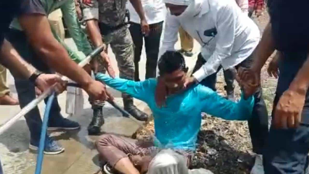 डिझेल अंगावर टाकून पेटविण्याचा प्रयत्न करणाऱ्या अकोल्यातील युवकाला पोलिसांनी स्वच्छ धुऊन काढले. pic.twitter.com/aKYmV2tzsz